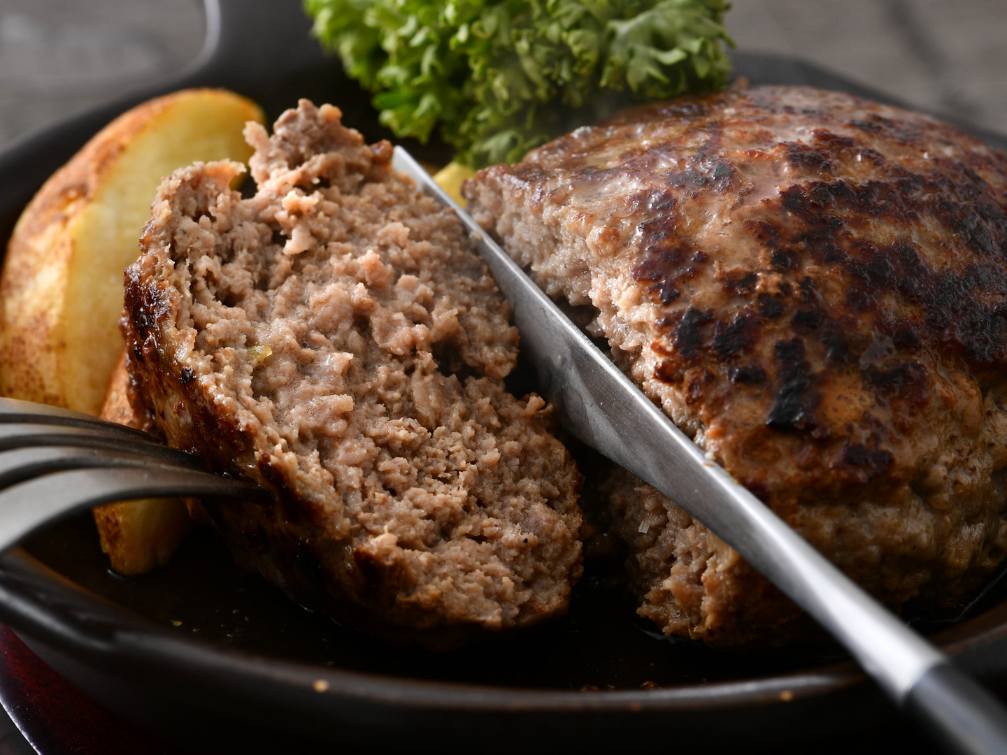 その最高級の赤身と良質な脂を、贅沢に100%使用した絶品ハンバーグです。