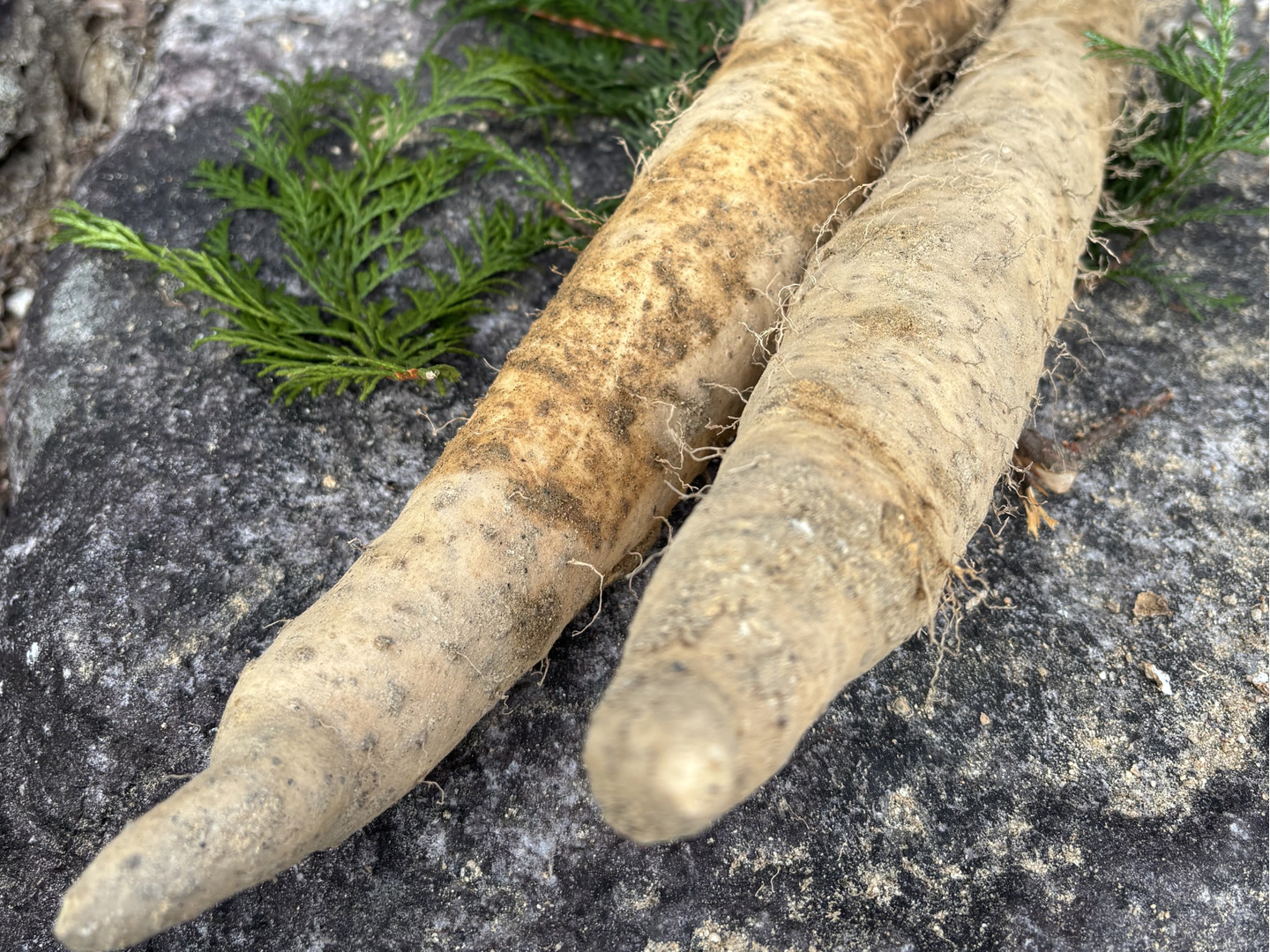 収穫の時は地面を1m以上も掘りすすめてようやく姿を現すほど。大地の恵みをしっかり感じながら掘り出した自然薯は、風味も食感も抜群です。