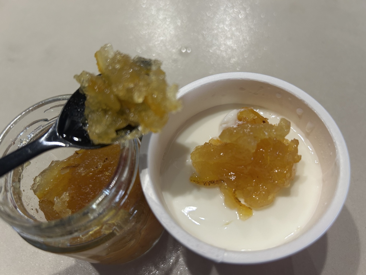 - ヨーグルトにかけたり、お湯に溶かしたり、ほっとひと息つけますよ。