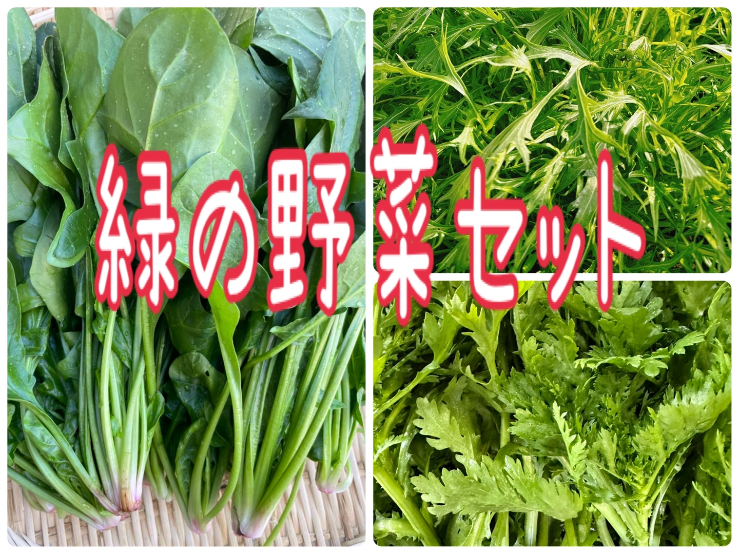 丹精込めて育てたほうれん草と春菊、水菜緑の野菜セット‼️各2袋ずつ