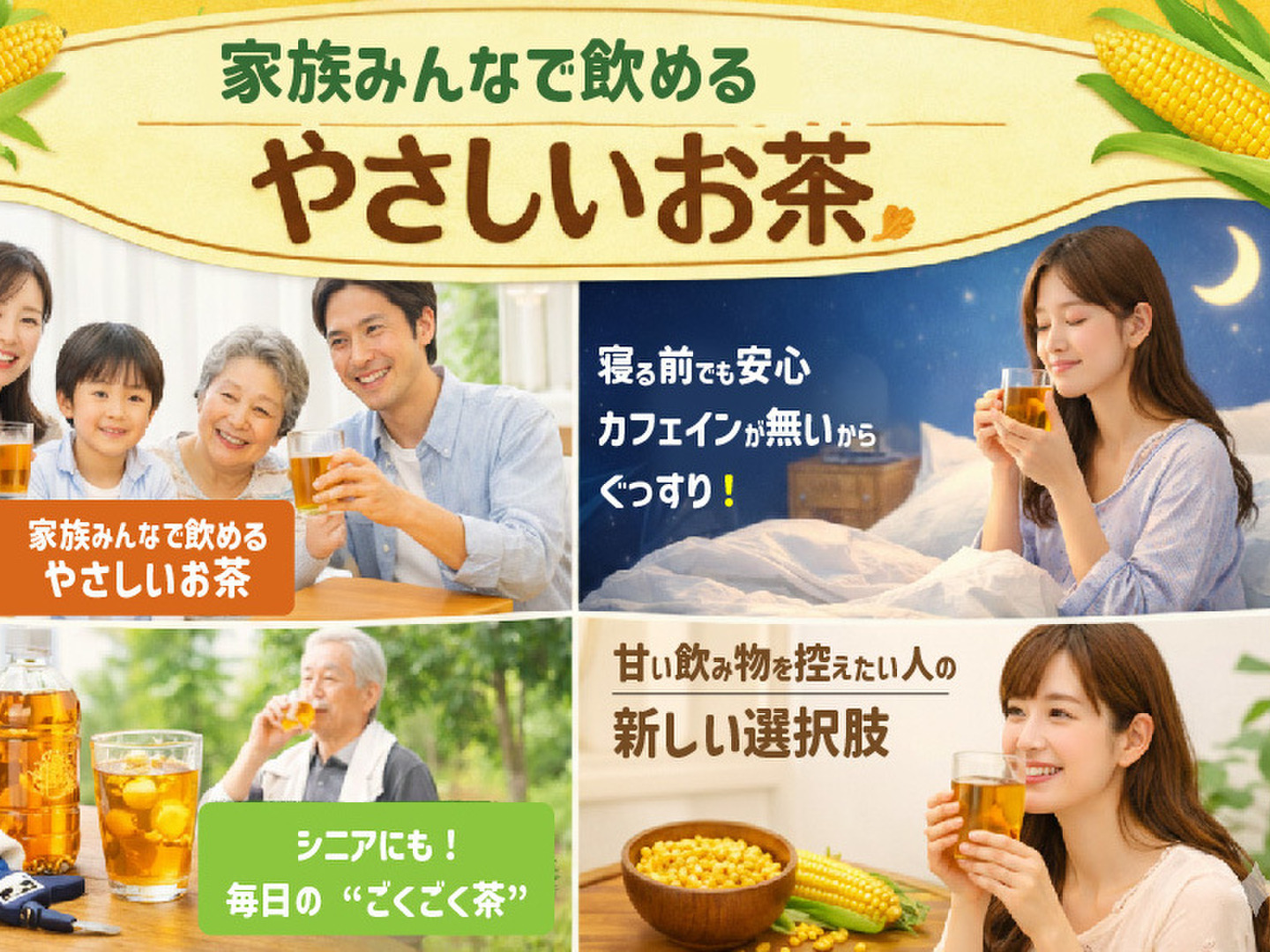 - スイートコーンの粒だけで仕上げたコーン茶