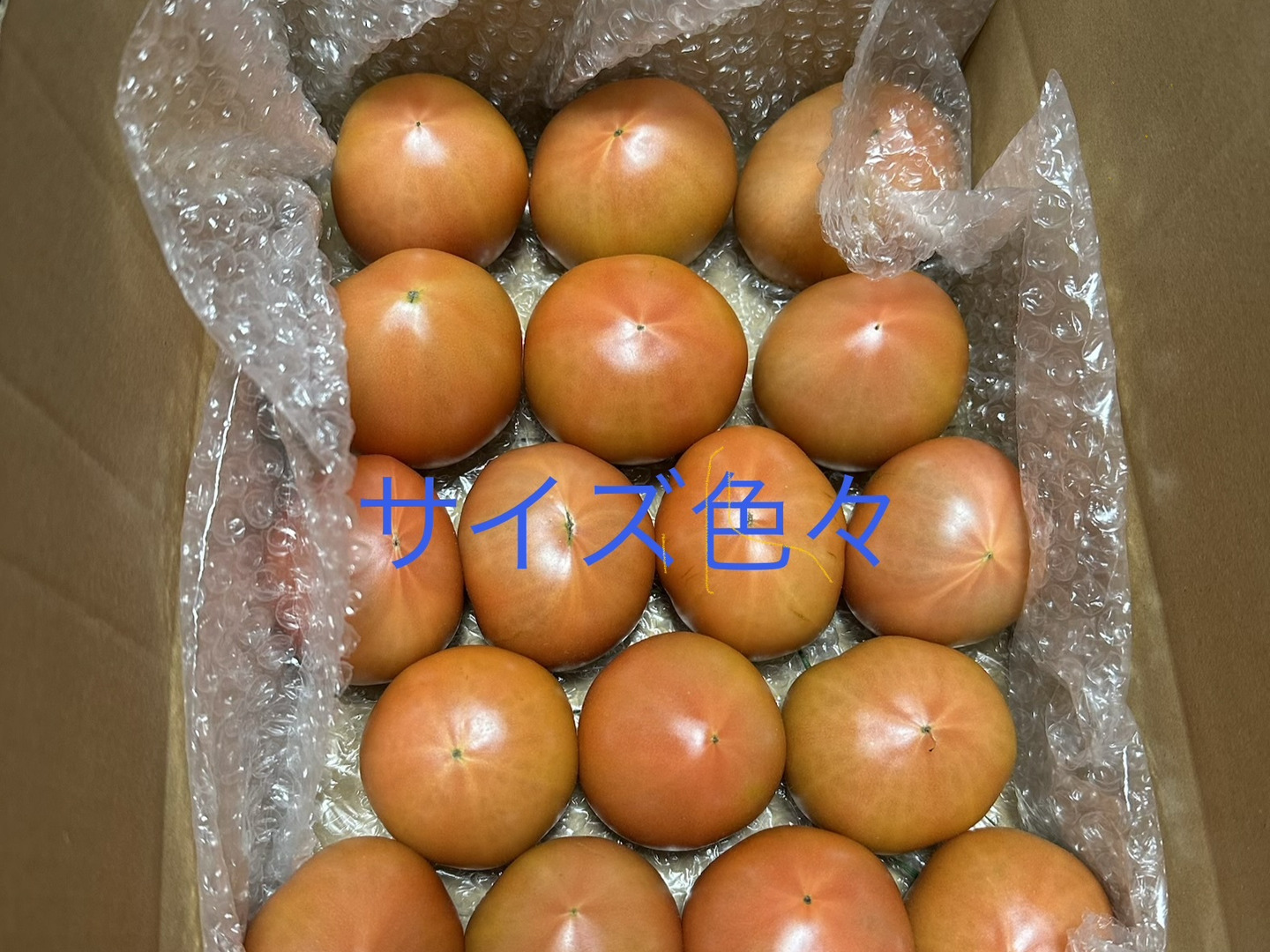 80サイズの箱に、Lサイズ〜3Sサイズまで色々なサイズの大きさの🍅が詰めてあります。