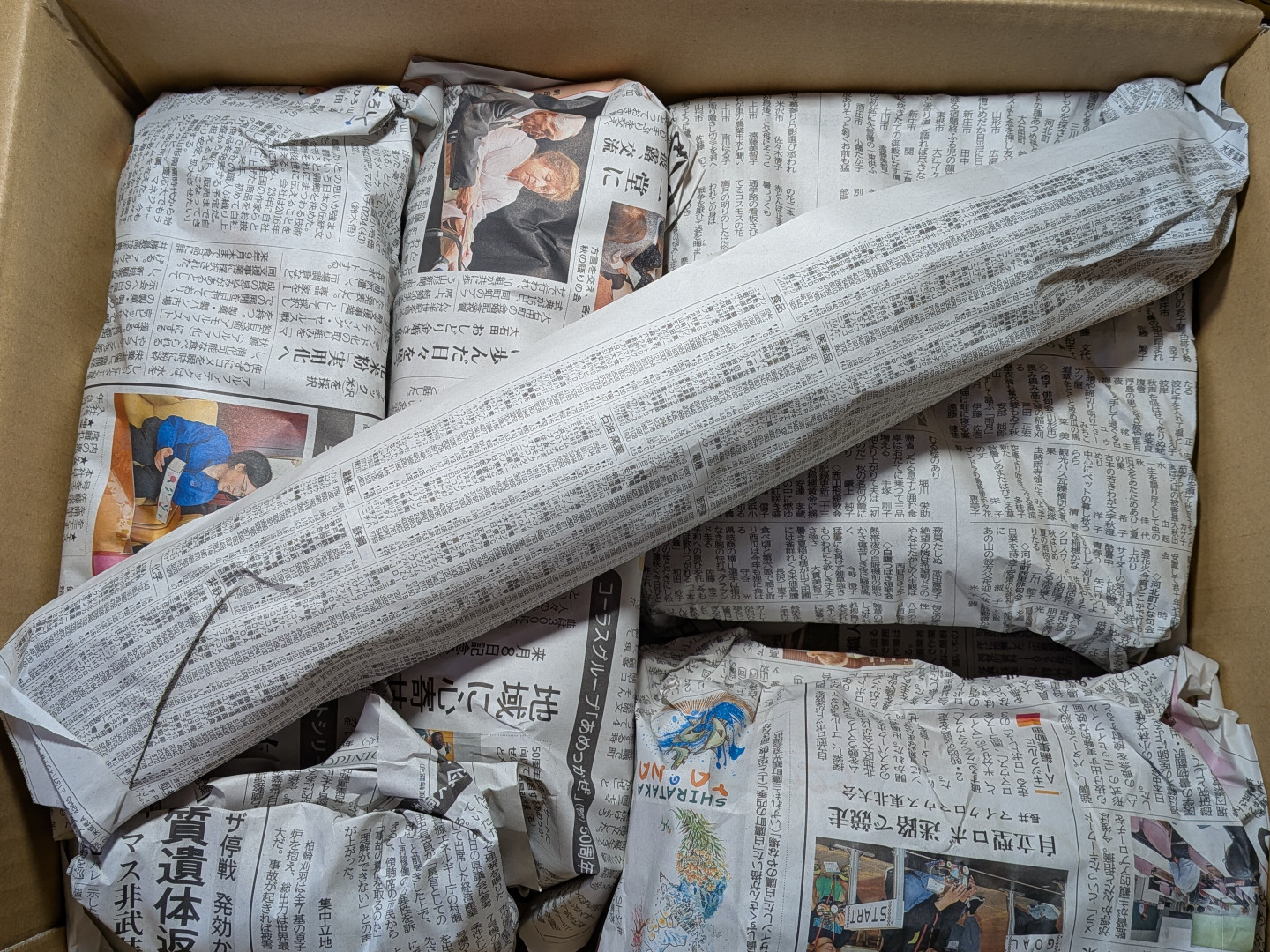 なお、輸送対策のため、商品を新聞紙で包んでおります。
