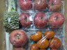 青大豆とネギは低温貯蔵したものです。柿は富有柿ですが、食べ頃が過ぎて完熟しております。リンゴはキズや割れ等があります。