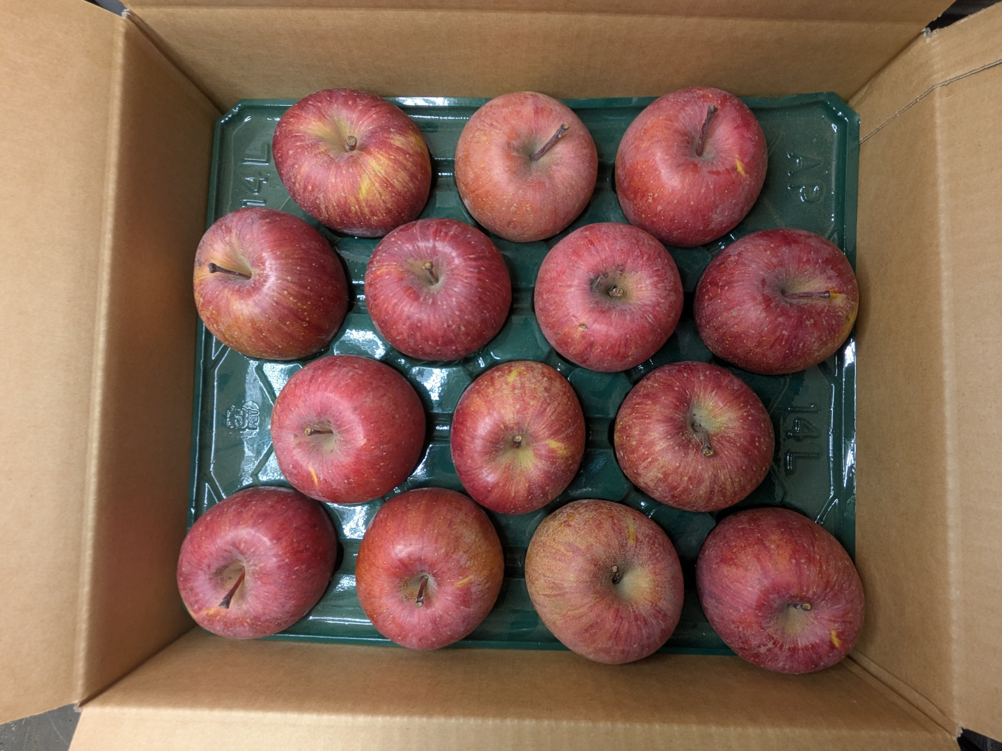 ふじリンゴの箱詰めで、 大きさにより14玉サイズと16玉サイズの2種類があります。