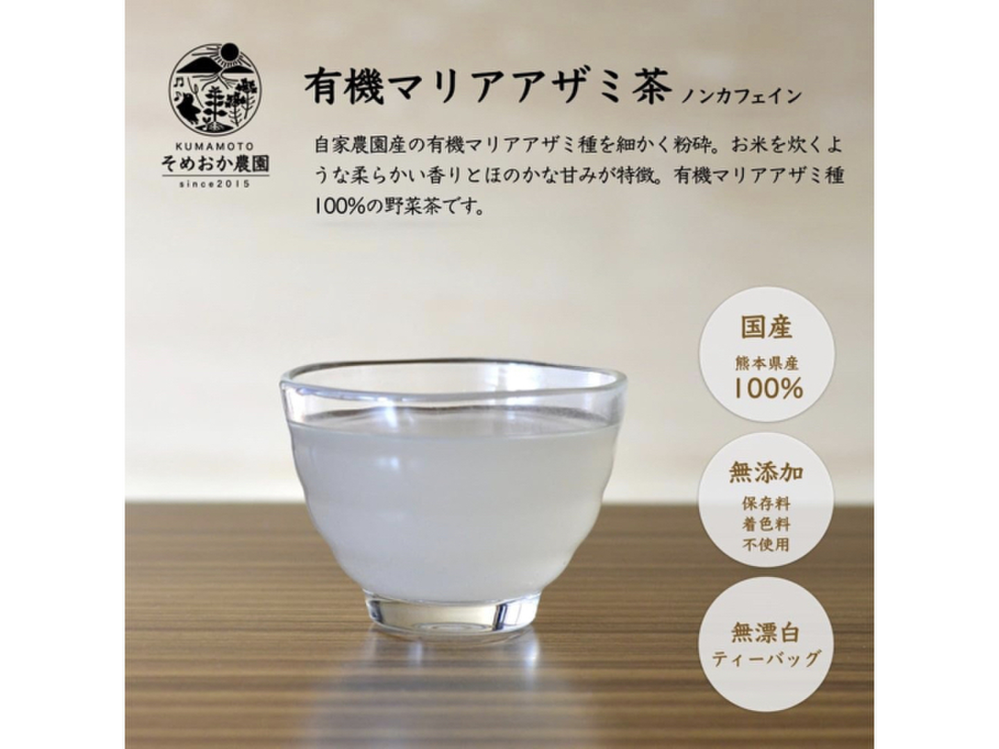 自家農園産の有機マリアアザミ種を細かく粉砕。お米を炊くような柔らかい香りとほのかな甘みが特徴。有機マリアアザミ種100%の野菜茶です。