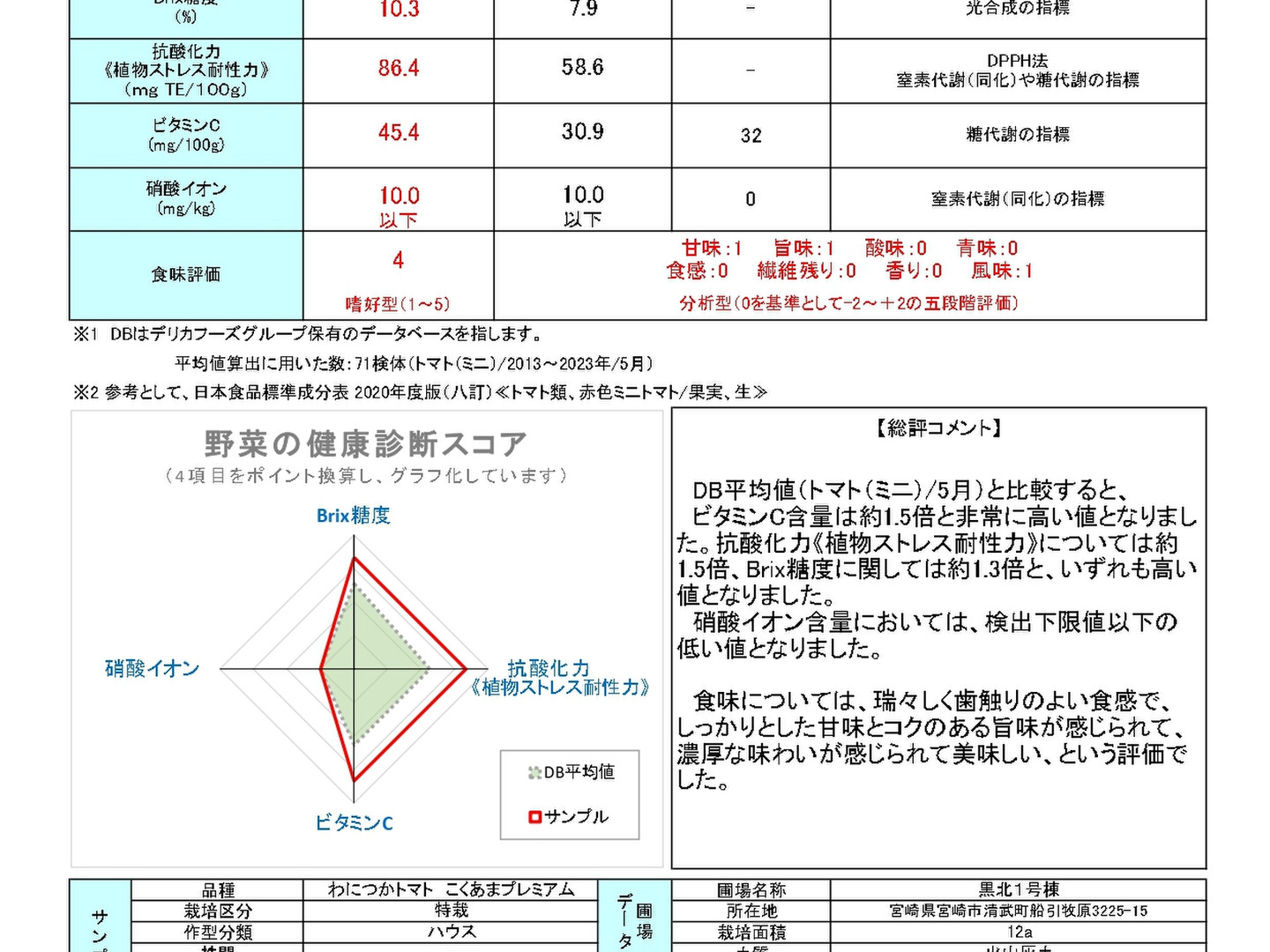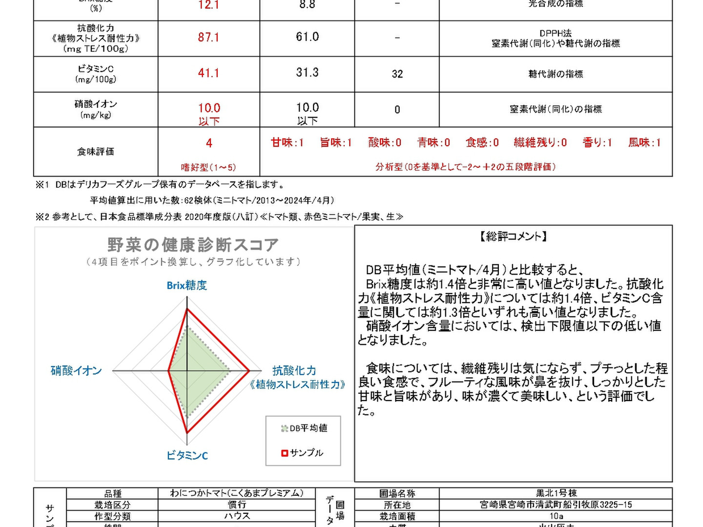 かわむら農園 宮崎県宮崎市 7いいね 生産者のこだわり 1 【こだわりのポイント 成分分析報告書~安心と美味しさの証明~】 2 【こだわりのポイント ~日本一の太陽が育む特別なトマト~】 3 【5つのこだわり ~家族の笑顔を育てる特別なトマト~】 4 【地域と共に歩むかわむら農園 ~農福連携の取り組み~】 最近のメディア実績 2021年3月 UMKテレビに出演しました。 2023年4月 MRTラジオに出演しました。 2024年4月 MRTラジオに出演しました。