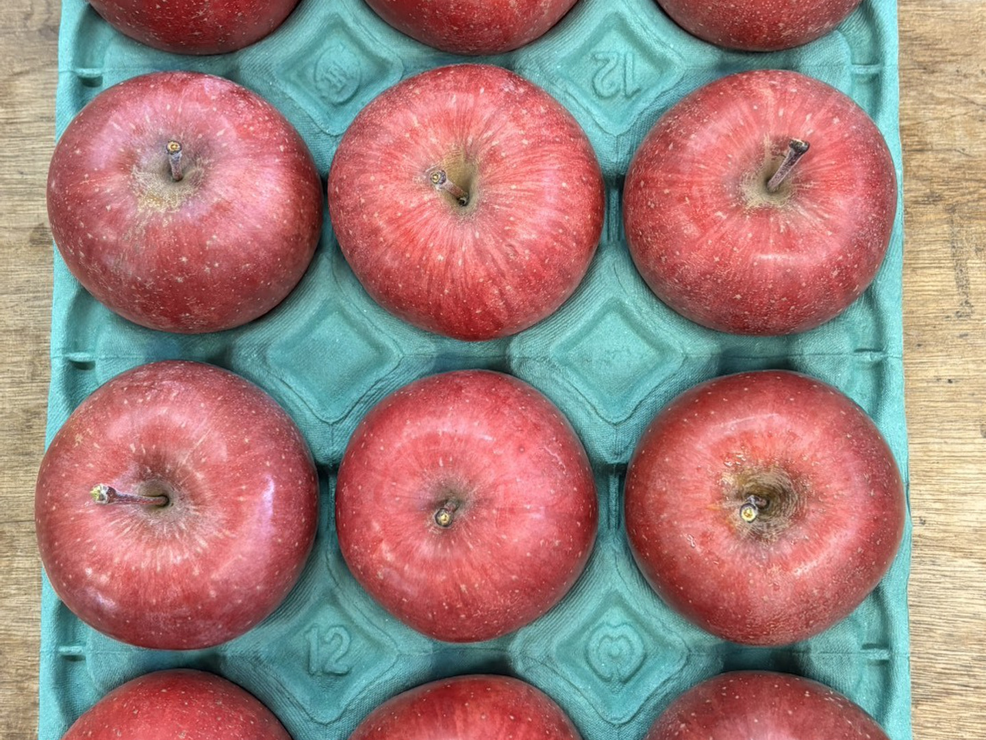 サンふじの蜜は、人工的なものではなく、ハチミツ色をしているので「蜜」と呼ばれています。蜜は収穫後少しずつ果肉に吸収され、12月下旬から1月にかけて見えなくなります。