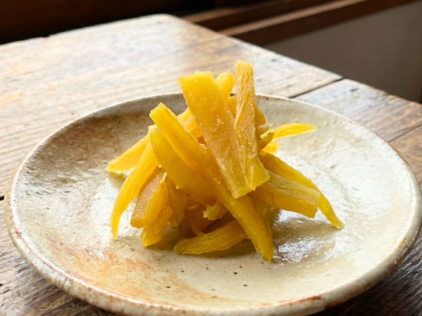形や大きさはバラバラですが、お芋は厳選された国産「紅はるか」。長期間じっくりと熟成させ、甘みを引き出しています。