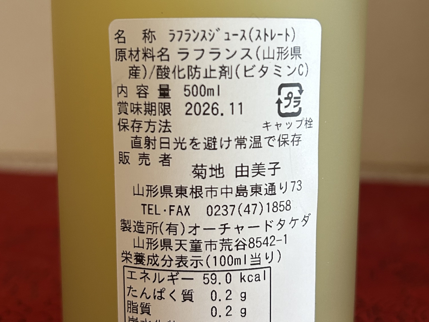 無濾過なので瓶の底に沈殿してしまうことがあり、若干濁りがあります。よく振ってからりんごやラフランスの食物繊維も一緒に飲んで頂くことをオススメ致します。