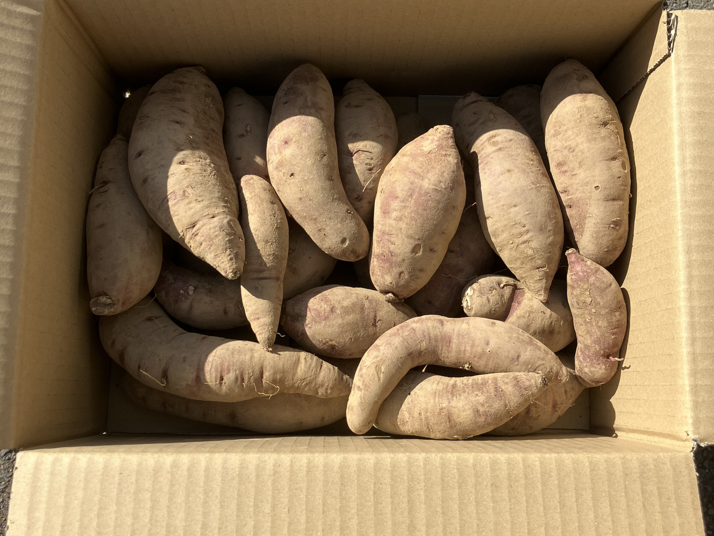 さつまいもの保存に適した温度は13~15℃、湿度は80~90%で洗わずに土付きのまま1本ずつ新聞紙に包み、段ボールや紙袋に入れて保管します。