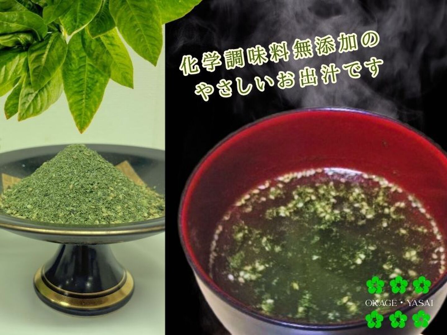 おかげ野菜の料理塩と鈴木さん家のおわん麩 2食入 伊勢志摩産食用藍と水耕栽培野菜のお出汁と豊川産おわん麩のコラボ! 化学調味料不使用!