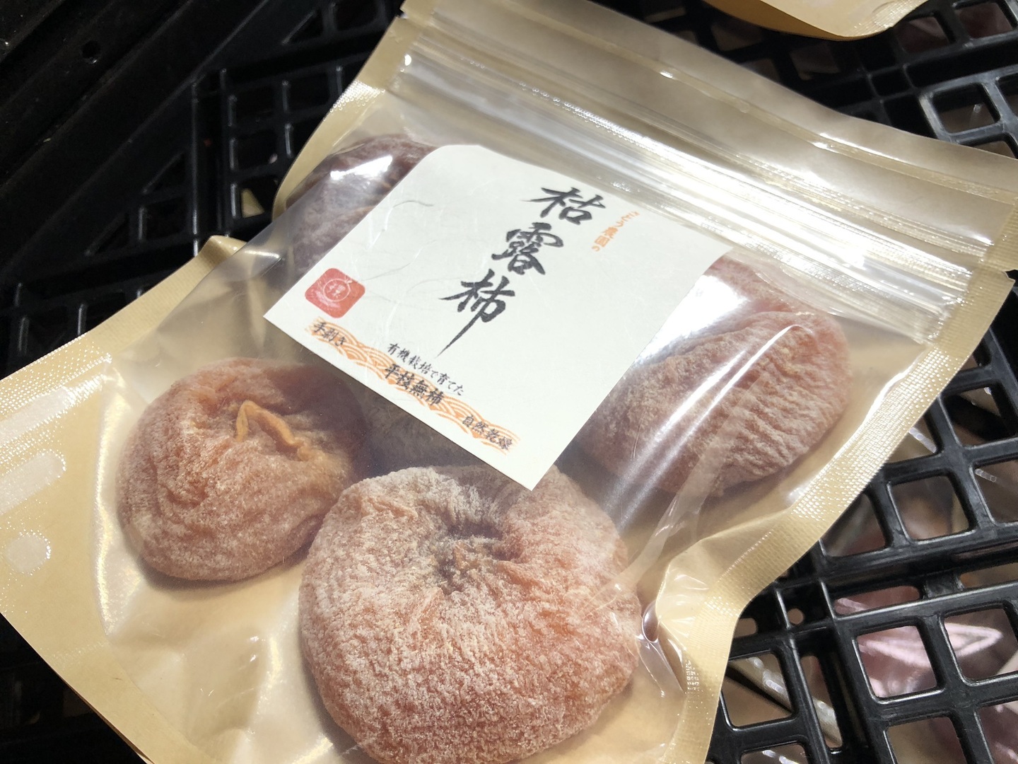 ・柿表面の白い粉末は、柿の糖分が結晶化したものですのでお召し上がりいただけます。