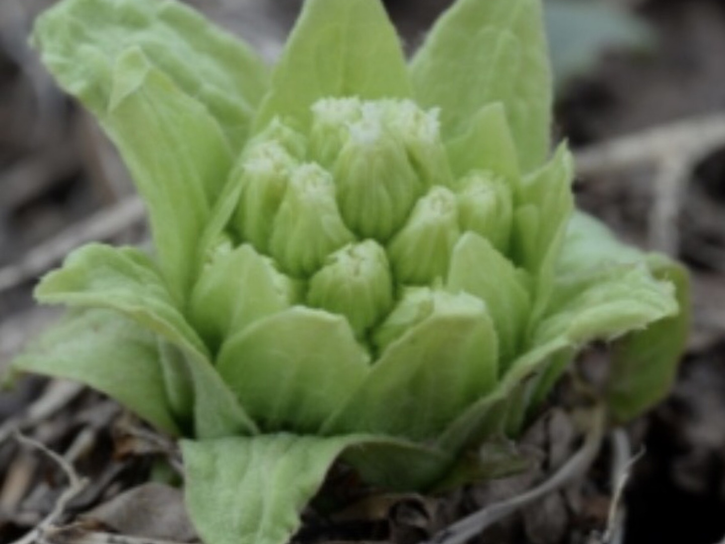 ふきのとうとは、ふきの花のつぼみを指す名称で、ほろ苦さと独特の香りが特徴の春の山菜です。ふきは、地上部を枯らして越冬し、春に芽吹く多年草。土の中で茎を広げ、そこから地上へ花や葉を伸ばします。この地中から出てきたばかりで、開花する前の花のつぼみを「ふきのとう」と呼んで食用にします。