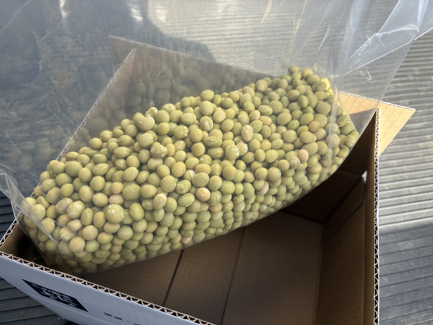 真空パックで出荷するとマメが割れるため、1kgをジップロックに入れて発送します。