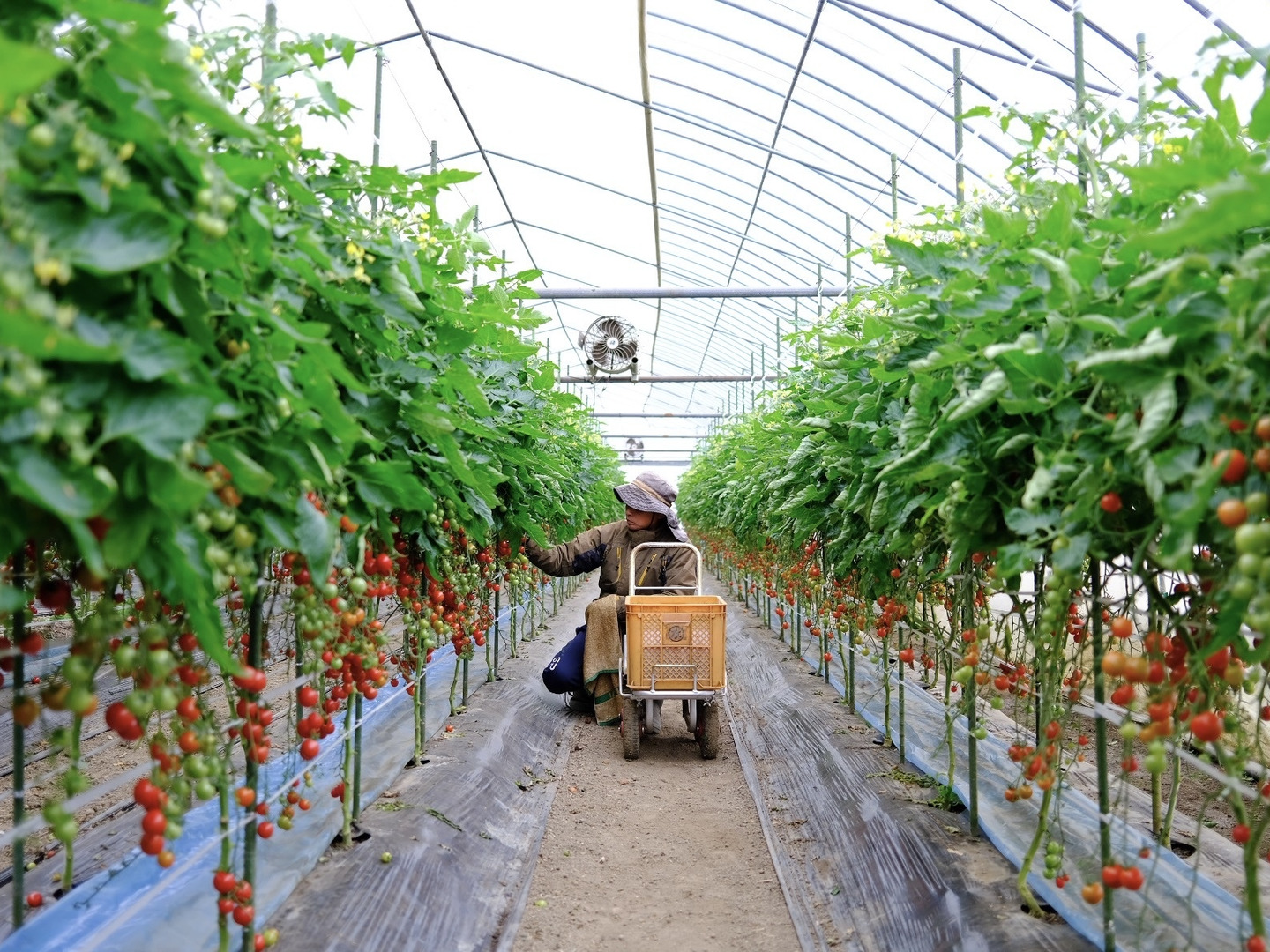 内陸の気候を生かしハウス内と外気の温度調節により寒暖の差にて、ゆっくり育ったトマトの甘さと旨味をを引き出しています。特に冬春のシーズンは成長が遅く水分量が適度に抑えられ味が濃くなります。果肉がしっかりとしていて甘みと酸味のバランスがよく、さっぱりとした味わいです。是非楽しんで下さい。