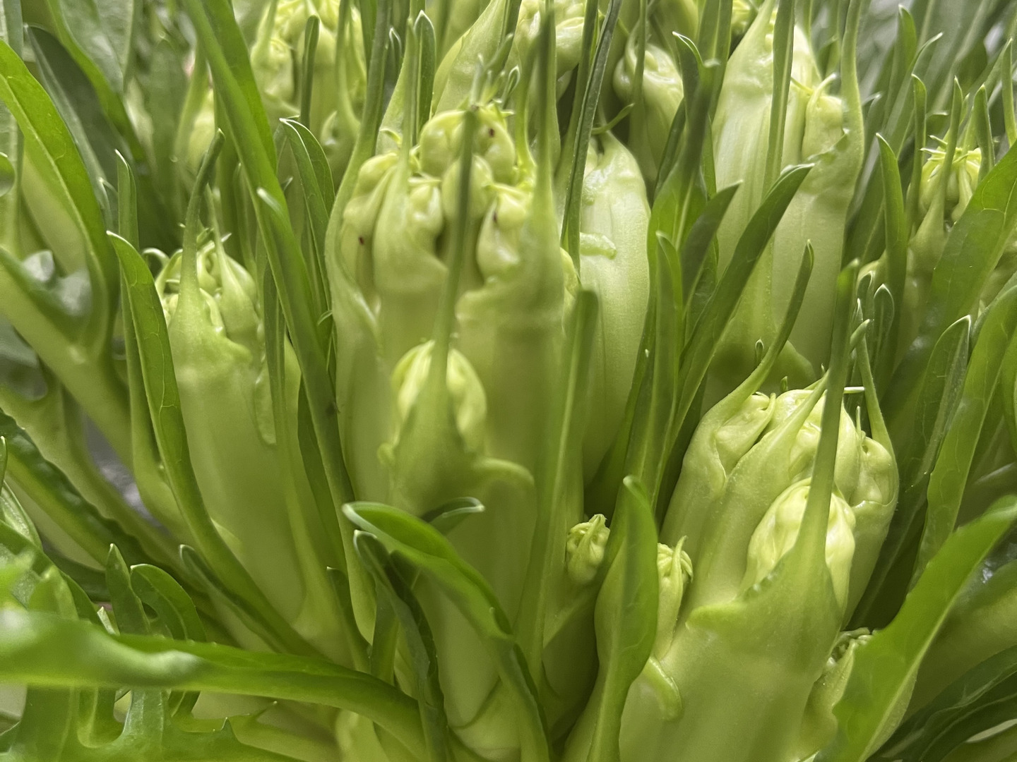 新芽を細かく割いてアンチョビサラダでいただくのが定番です。