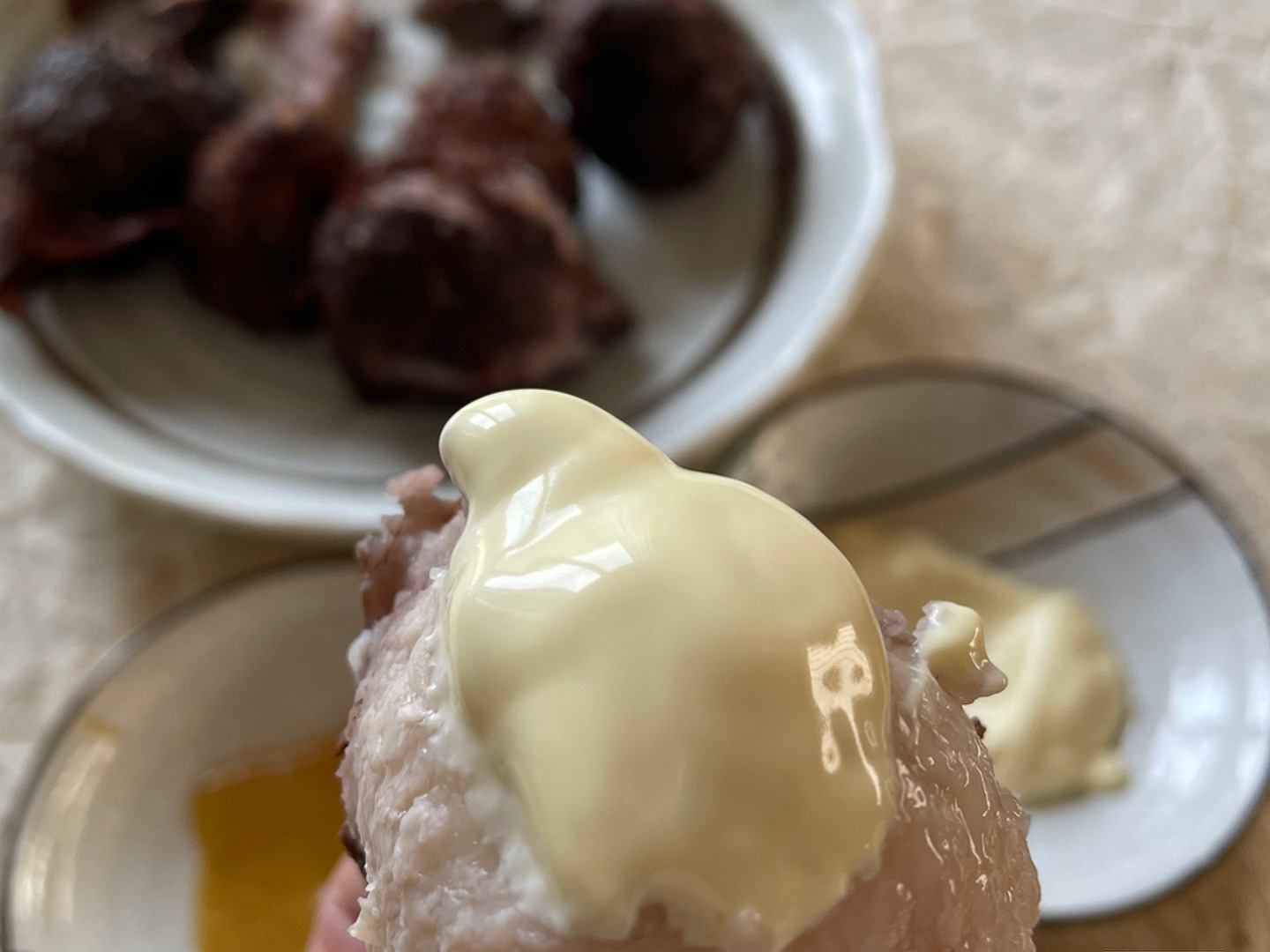 例)①食べ方としては、皮のまま茹でてマヨネーズやおでん味噌を付けて、お子さんのおやつにも、お酒のお供にもぴったりです。簡単調理で里芋の素朴な味をそのまま楽しめます。。
