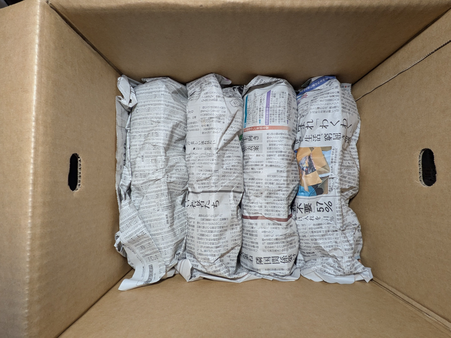 なお、輸送対策のため商品を新聞紙で包んでおります。