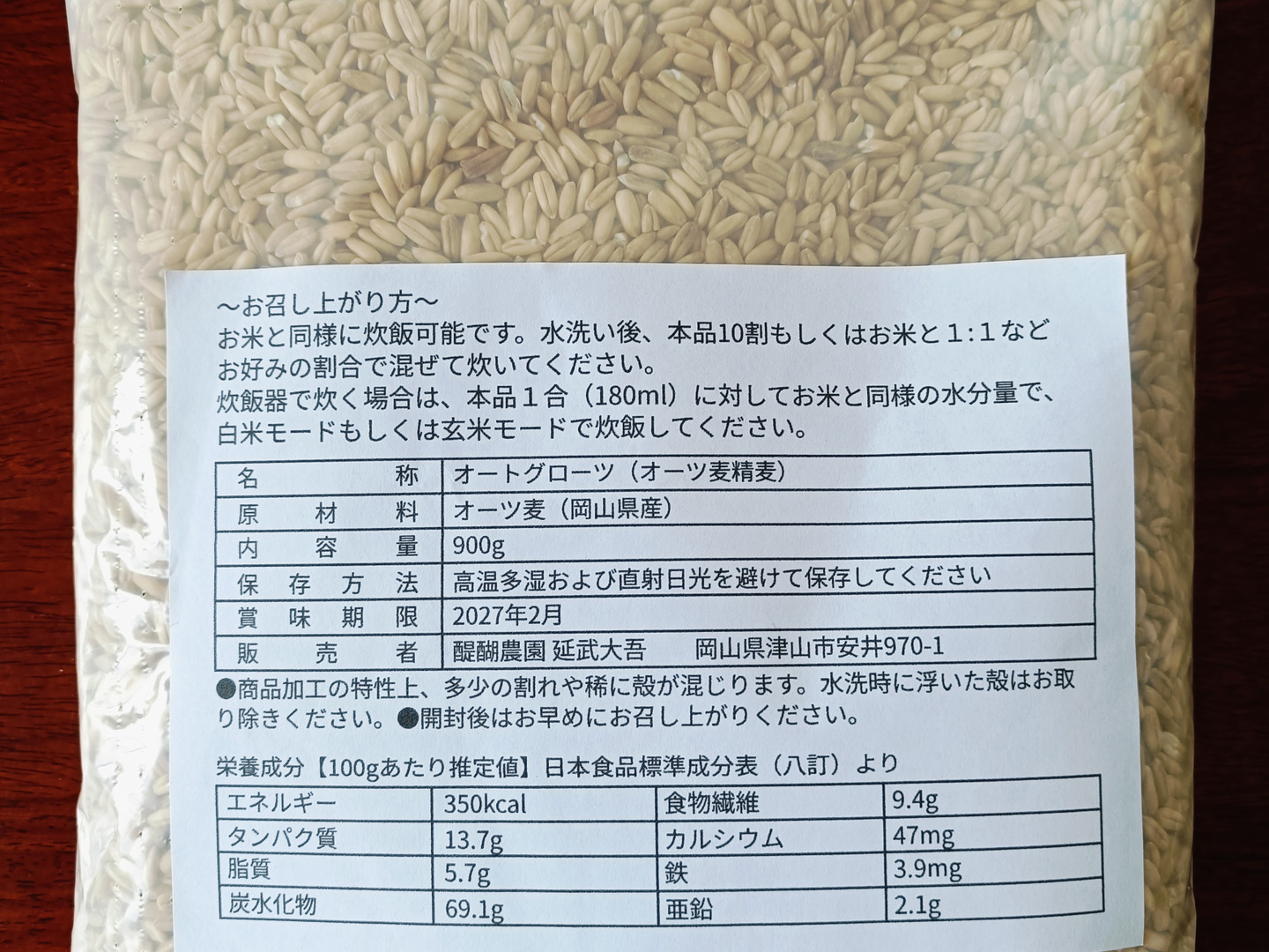 | å 容 | 岡山çç£ããªãŒãã°ããŒãã900g | ||||||