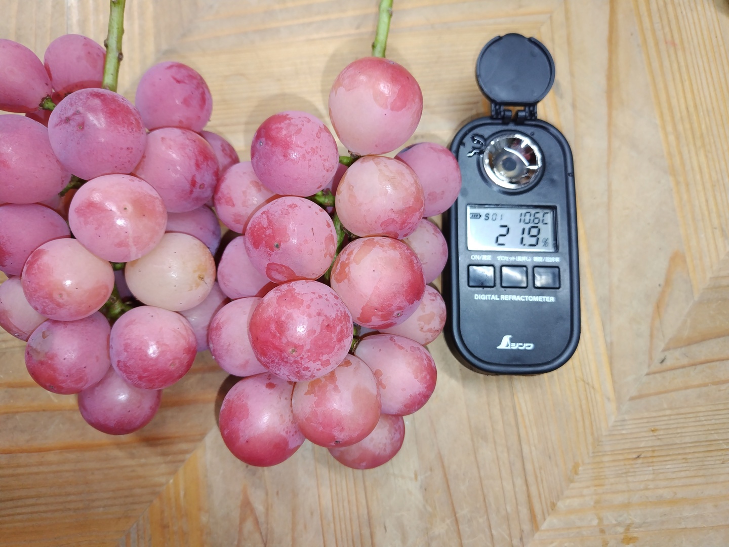 味 :糖度が高く酸味が穏やかで、濃厚な甘みが口いっぱいに広がります。巨峰やピオーネのような上品な香りも特徴です。
