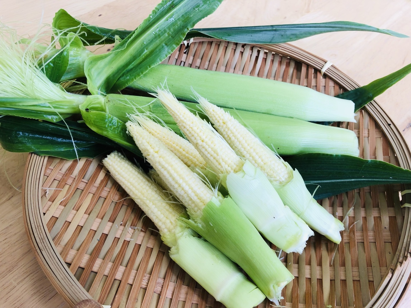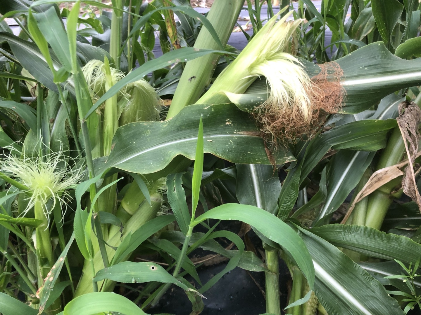 - しっかりと間引いて、こだわりの1本仕立て!栄養が1本のとうもろこしに