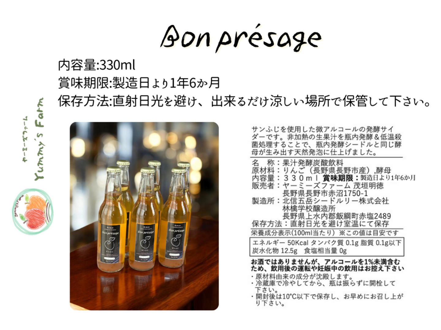 酸化防止剤不使用 無添加 微アルコールノンアルコール シードル 330ml 3本セット