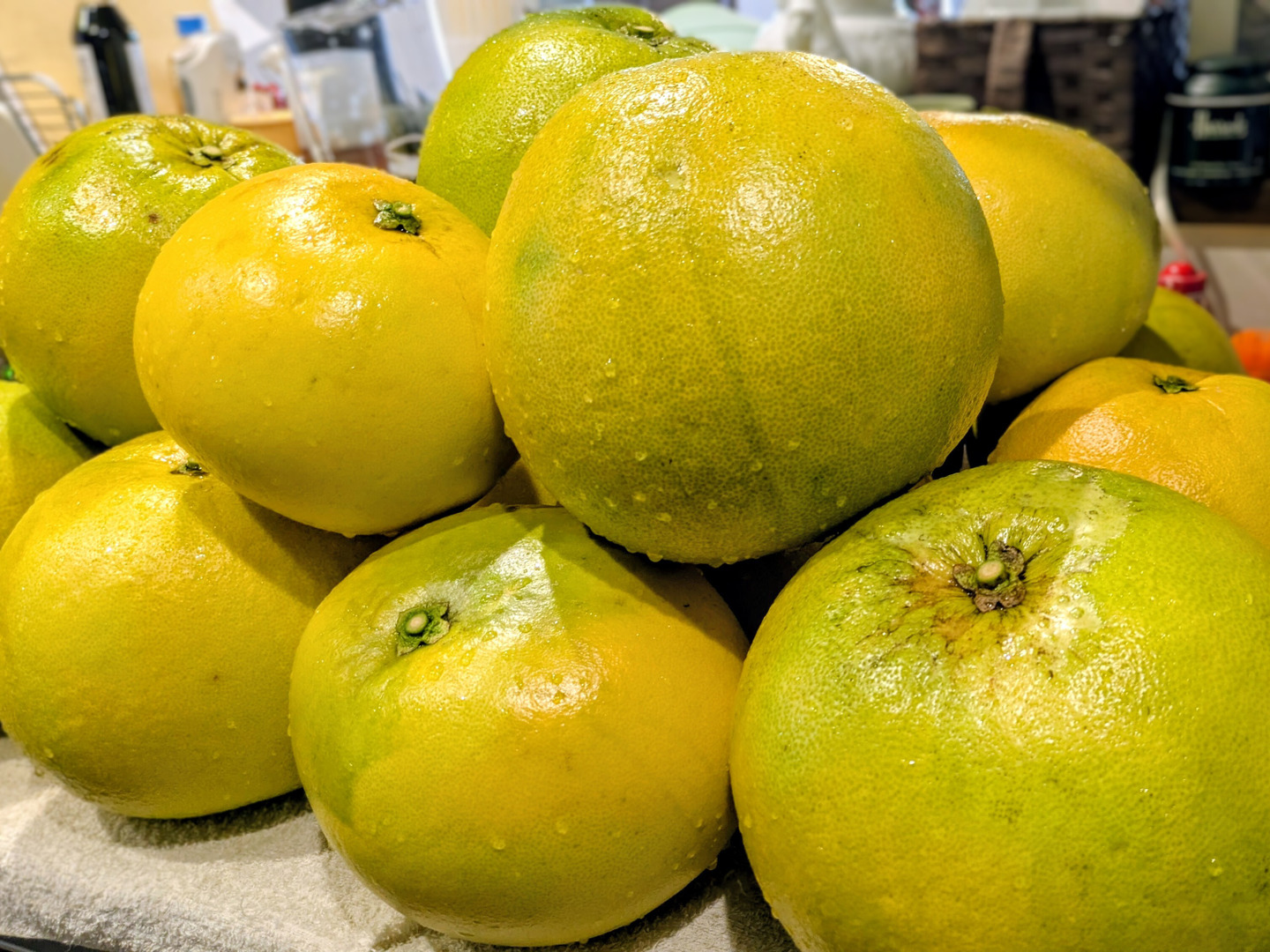 この晩白柚もそのひとつ。大きく育った実を手作業で収穫、追熟作業を行っています。