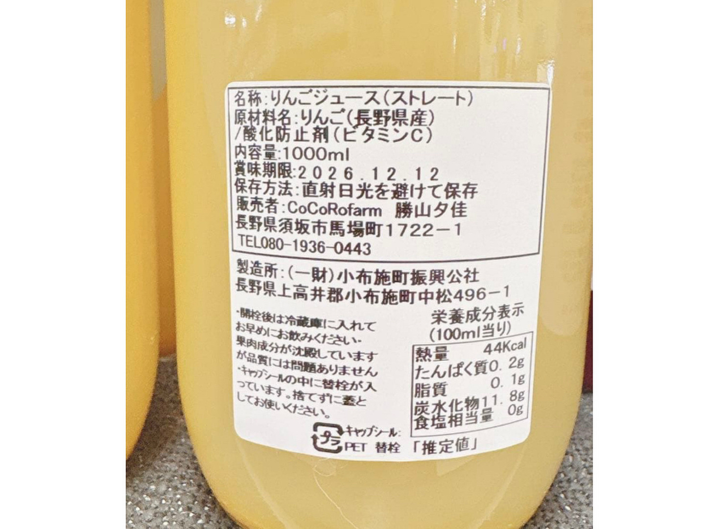 商品について あわせ買い対象 同生産者の別の「あわせ買い対象」商品と一緒にご注文いただくと、送料をまとめてお届けできる場合があります。 内容 信州りんごジュース 2本セット 重量・容量 約1ℓ 発送 ヤマト運輸 送料 ¥ 常温便 + ¥ 0 数量1点ごとに送料が発生します。 種別 果物 加工品 飲料 フルーツジュース 加工品 飲料 ジュース 産地 長野県 特定原材料 なし 農薬節約栽培 果物 加工品 家庭用 フルーツジュース ジュース 長野県x果物 長野県x加工品 長野県x飲料 長野県xフルーツジュース 長野県xジュース 賞味期限 / 保存方法 発送から300日間 直射日光を避けて保存 商品説明 CocoRo♡farmのりんご、3種類(フジ・名月・シナノホッペ)をブレンドしたりんごジュースを作りました。 甘みと酸味がちょうど良く飲みやすい、りんご100%のジュースです。 お子様も安心してお飲みいただけます。ご自宅用にはもちろん、内祝いやお誕生日ギフトにもおすすめです。 もっと見る この商品のことをお友達にもシェアしませんか ポスト シェア