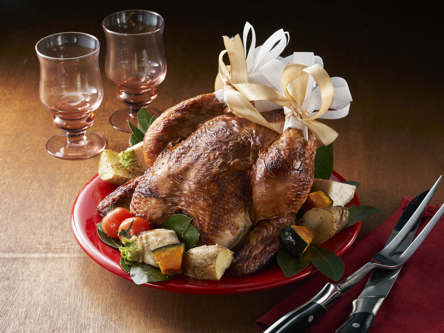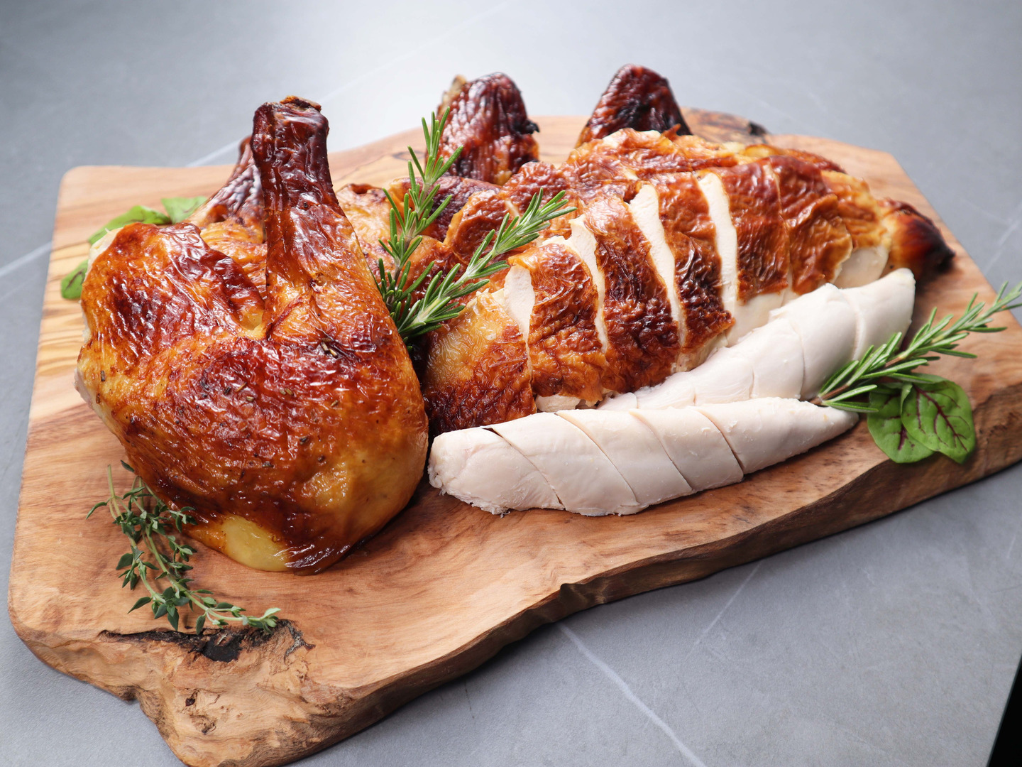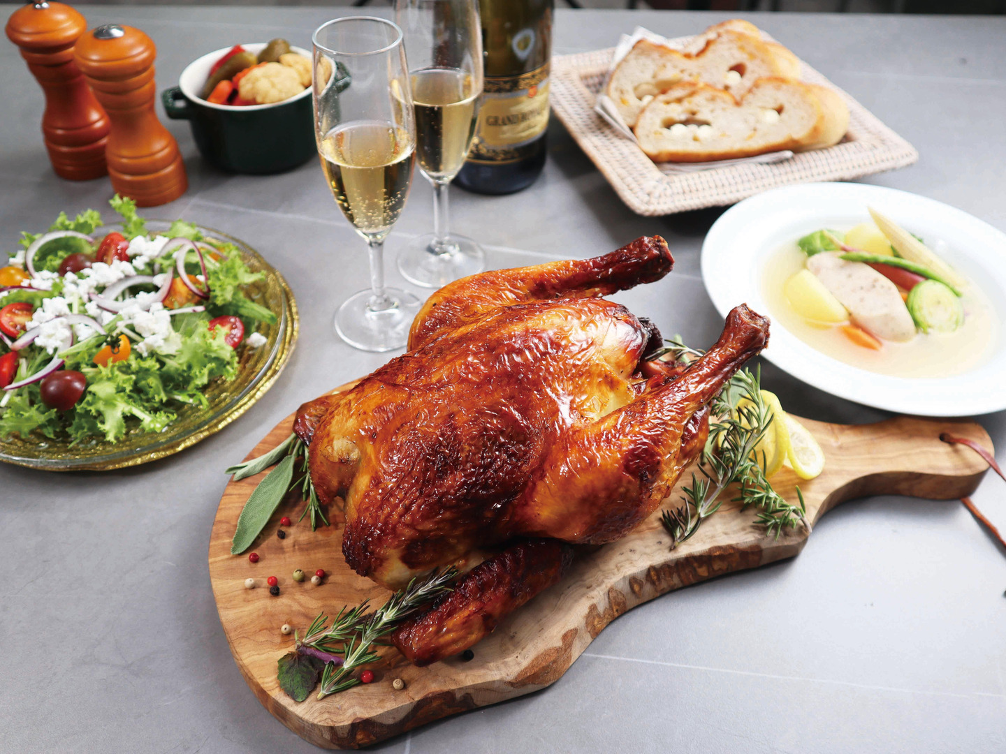 - 丸ごと一羽を贅沢に焼き上げたローストチキン
