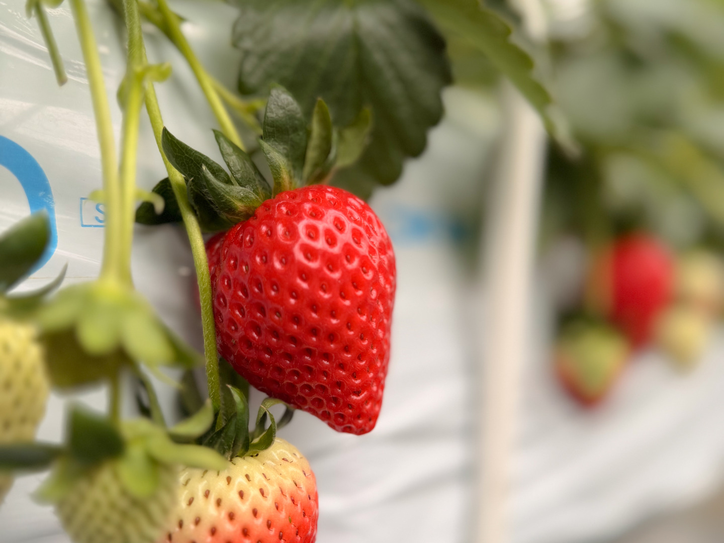 高設栽培とハウス内環境の徹底管理により、太陽光・風・温度・湿度が最適化された中で育成。