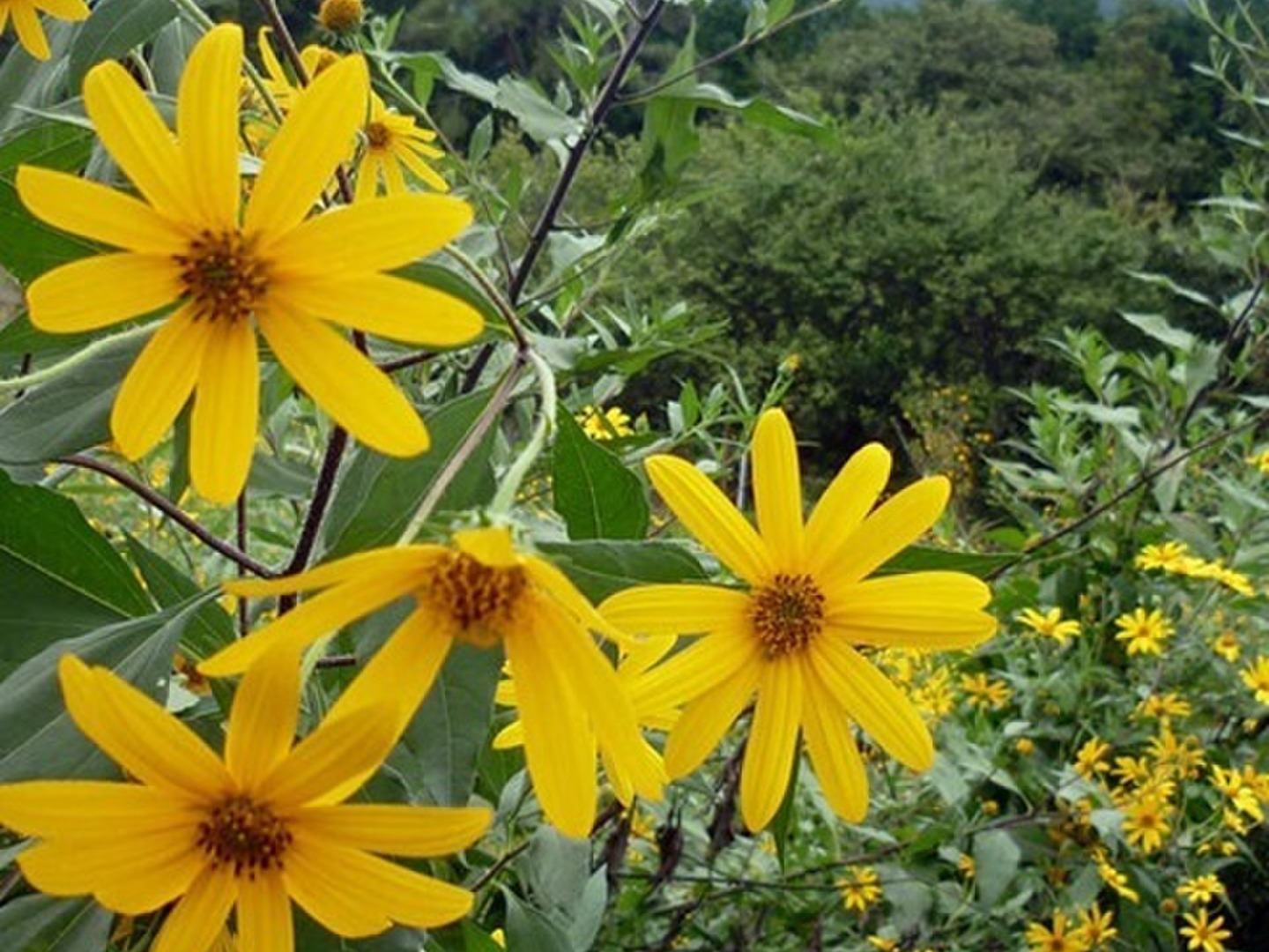 ◆菊芋は丈夫で生命力が強く肥料も不要で、丈が3m近くにもなり除草剤も必要ありません。