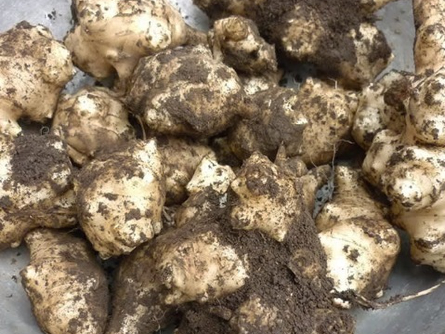 ・菊芋は収穫後長く放置すると、芽が赤や緑色になってしまう為、一度に収穫は致しません。