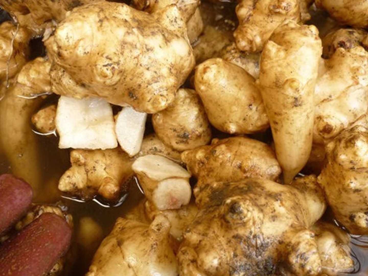 ・ざっと土を落とした菊芋は、芽や傷んだ所などを取り、一個づつ丁寧に手洗いします。