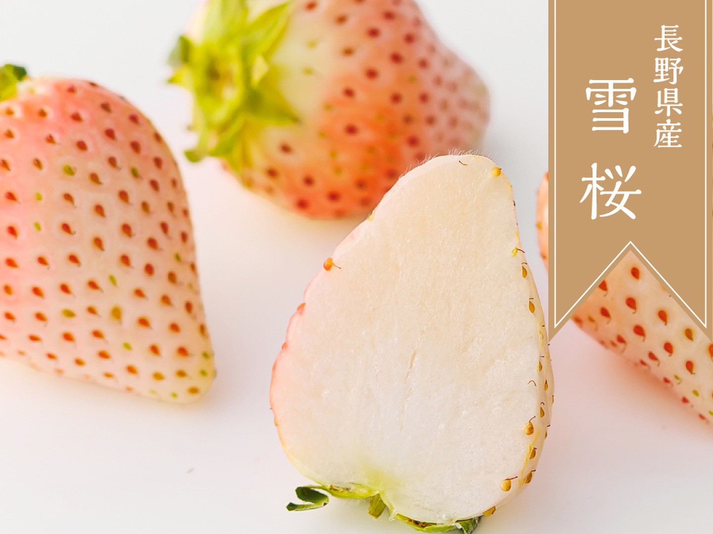 雪桜は珍しい白いちごで、果皮の色は薄く果肉も白色です。