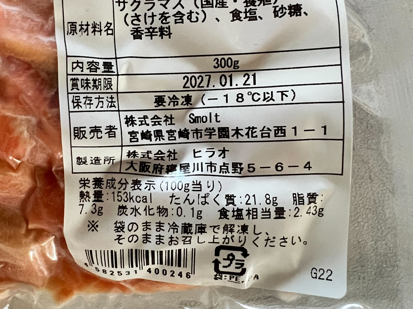 | 内容 | 宮崎産 本桜鱒のスモークサーモン(切り落とし)[300g] | ||||||