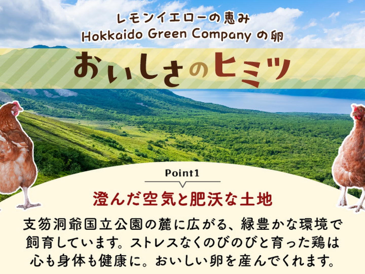 のびのび自由にすくすくと、母鶏たちは国立公園の麓に広がる緑豊かな環境で澄んだ空気、水、太陽の恵みを受けながら暮らしています。