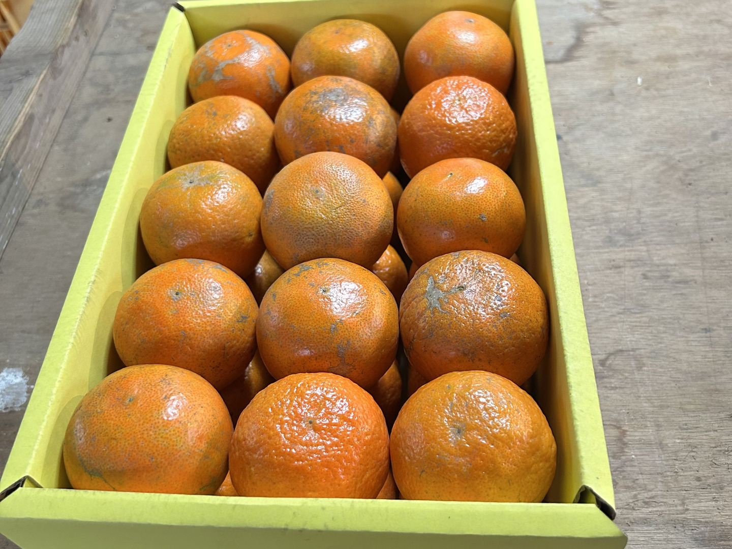 濃厚な味の完熟タンカンのご家庭用をお送りします。見た目はちょっと悪いけど美味しさは一級品。霧島市福山町で育った美味しいタンカンを味わってください!糖度は11度あります。Lサイズ6.8-7.2cm、Mサイズ5.8-6.2cm、Sサイズ5.2-5.6cm程度です。商品は、Lサイズ箱詰め、Mサイズ箱詰め、L、M、Sサイズの詰め合わせからお選び下さい。生搾りジュースにしても👌