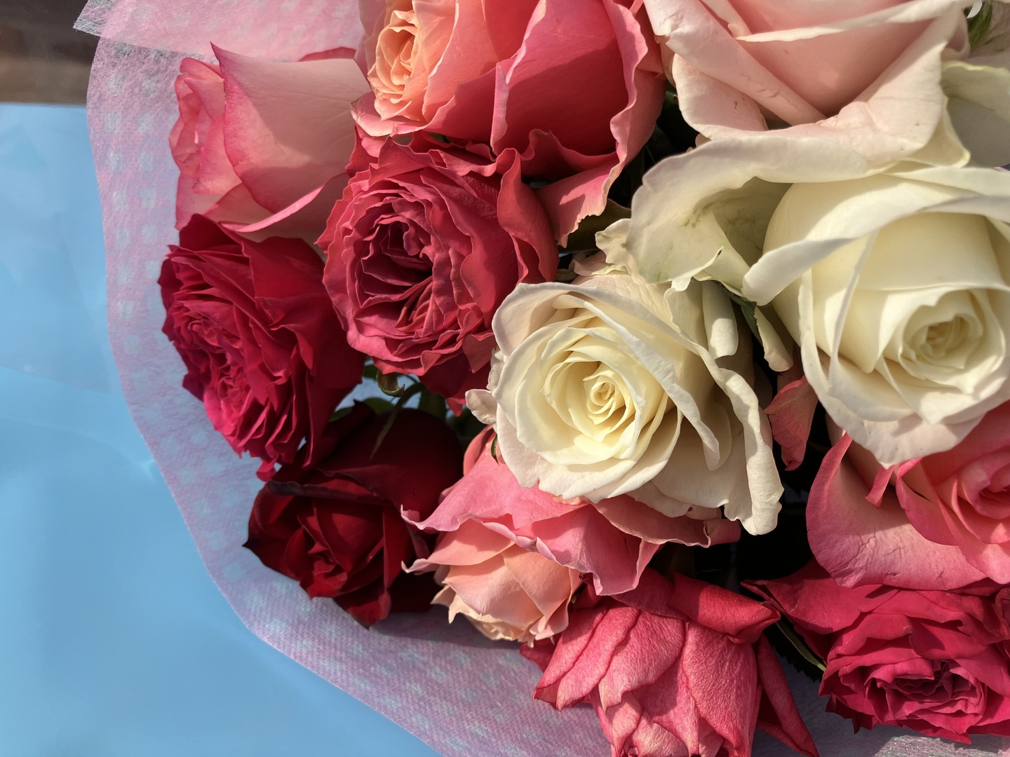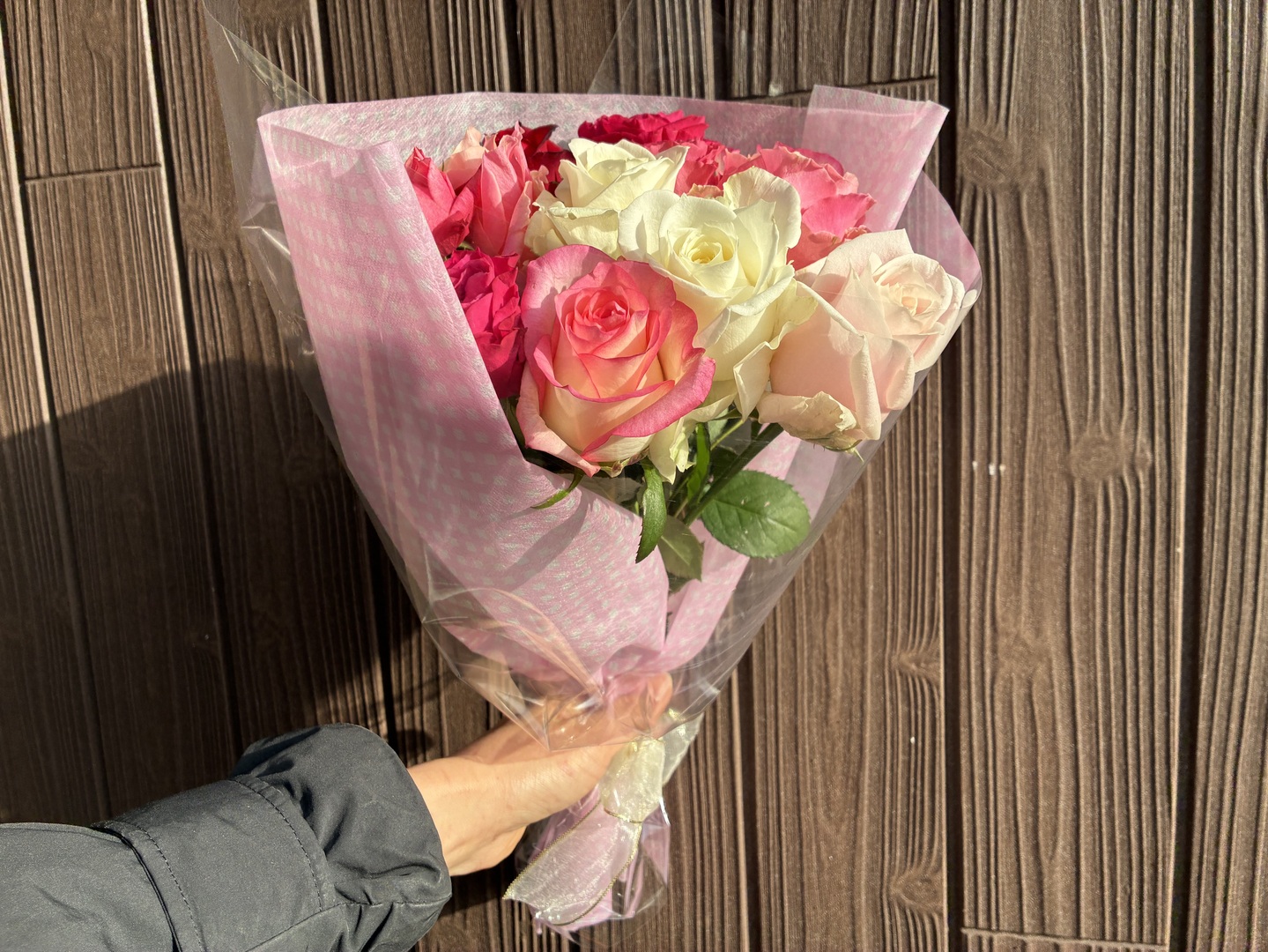 色味はピンク系でまとめ、品種はおまかせでご用意します。
