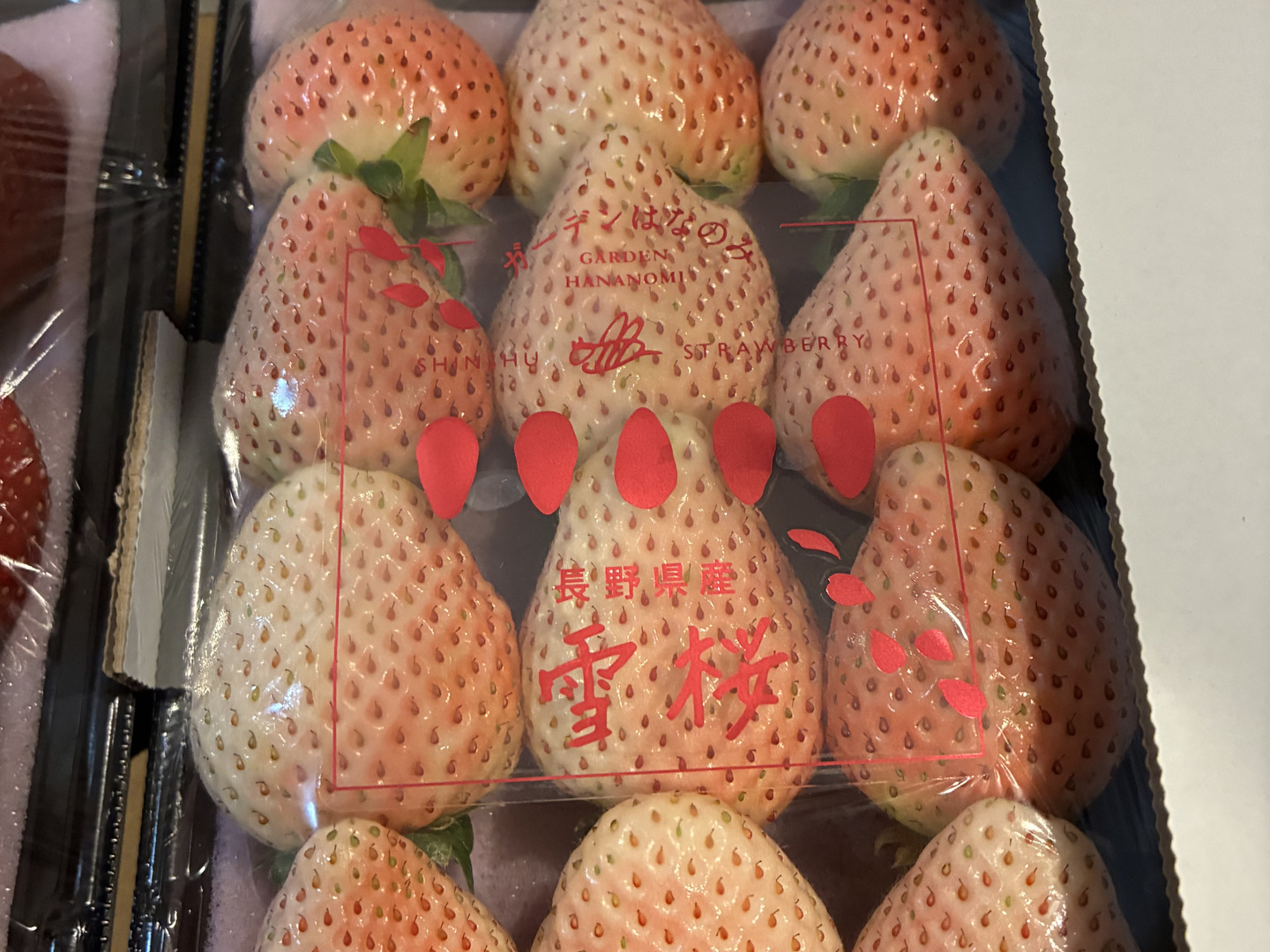 雪桜は珍しい白いちごで、果皮の色は薄く果肉も白色です。