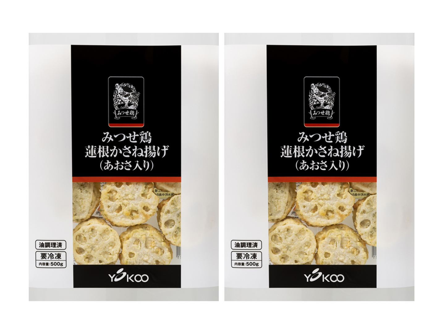 | 内容 | みつせ鶏蓮根かさね揚げ(あおさ入り)500g×2p | ||||||