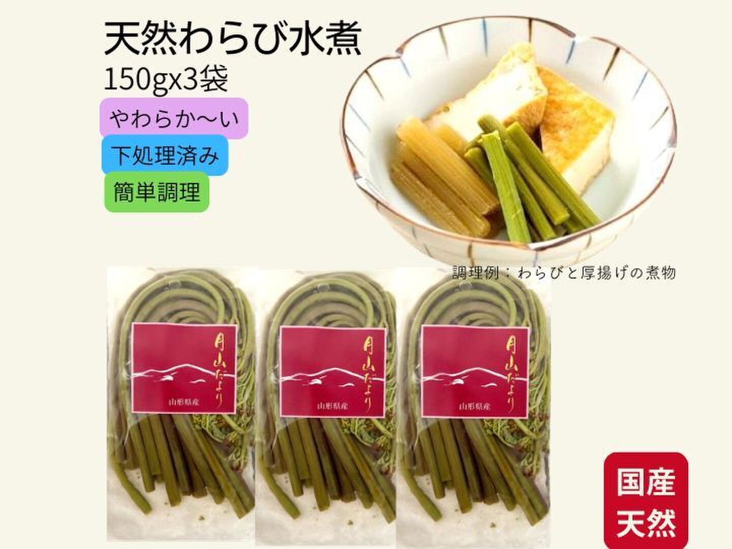 国産天然山菜 わらび水煮150g×3袋