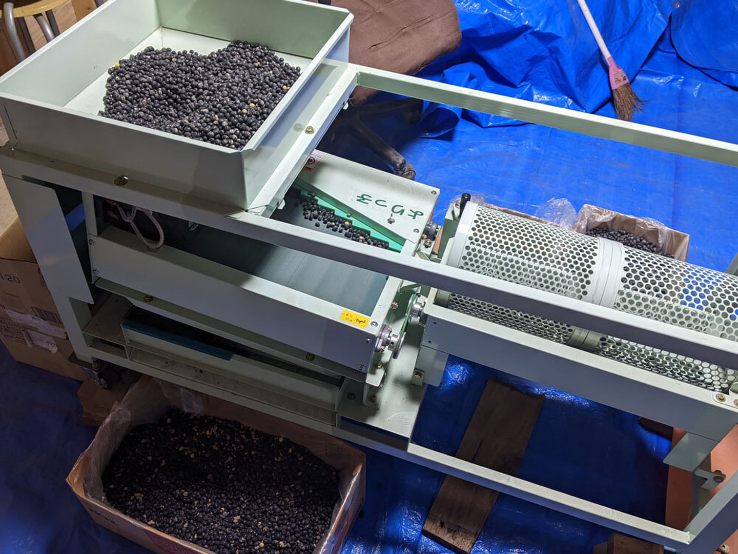 20年間自然栽培で黒豆を作り続けています。なるべく大地に負荷をかけない栽培を心掛け、種は自家採種、鳩対策に案山子、鹿やアライグマ対策に電気柵を近年始めました。長い間、収穫時に手間と時間をかけて高品質な農作物を育てる伝統的技術「ニオ積み」天日干しをしていましたが、数年前からコンバインを一部導入、収穫期間が1/3に減り体の負担がだいぶ減りました。時代の流れですね。