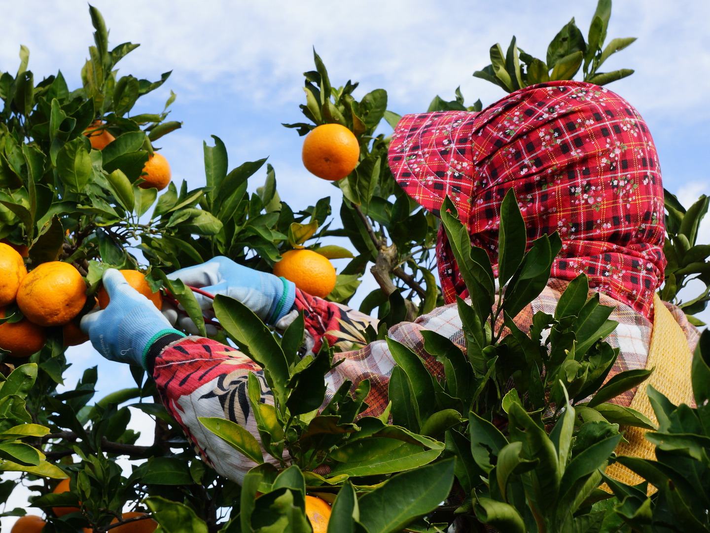- 1 水はけのよい南向きの段々畑で太陽の光をいっぱいに浴びて育ったみかんです。