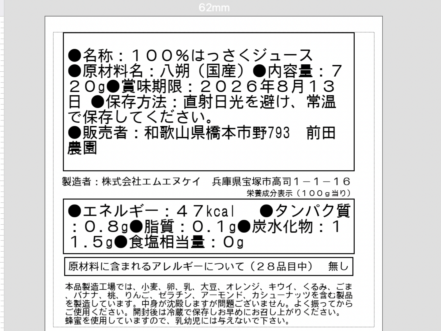 商品について あわせ買い対象 同生産者の別の「あわせ買い対象」商品と一緒にご注文いただくと、送料をまとめてお届けできる場合があります。 内容 和歌山県産 八朔ジュース 重量・容量 約1.4ℓ 発送 ヤマト運輸(食べチョク特別送料) 送料 ¥ 常温便 + ¥ 0 数量1点ごとに送料が発生します。 種別 果物 加工品 飲料 ジュース 産地 和歌山県 特定原材料 なし 農薬節約栽培 果物 加工品 特別栽培認証 ジュース 和歌山県x果物 和歌山県x加工品 和歌山県x飲料 和歌山県xジュース 賞味期限 / 保存方法 発送から160日間 開封後冷蔵庫にて保存 商品説明 2025年産の八朔が大好評でしたので記念に搾りました。八朔好きなお客様にどうぞ。 もっと見る この商品のことをお友達にもシェアしませんか ポスト シェア