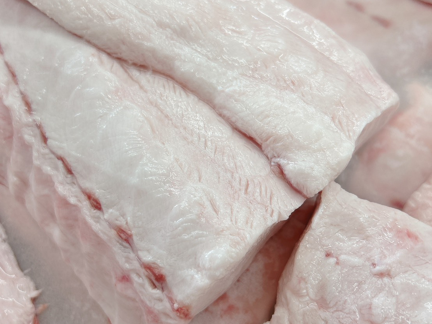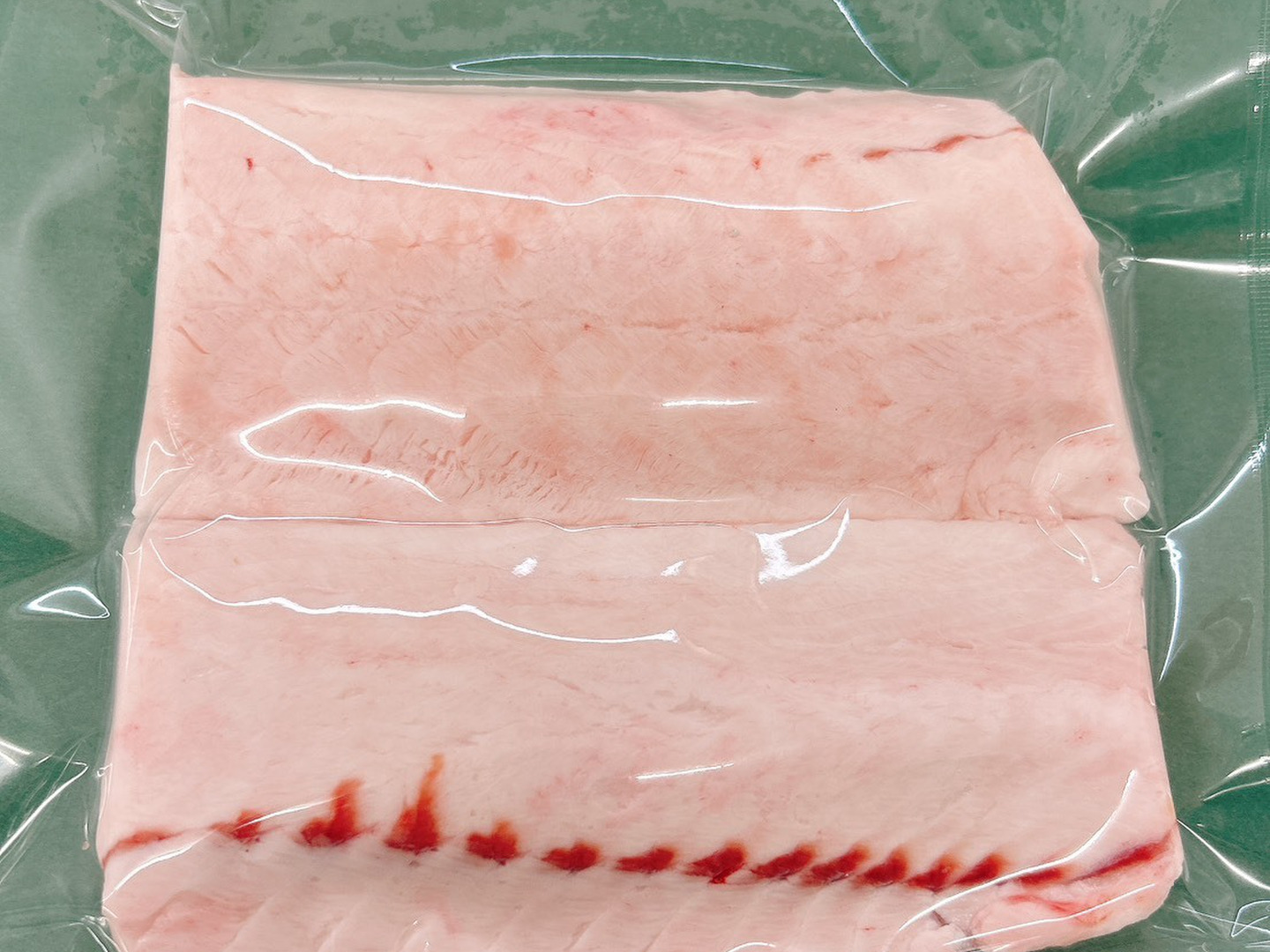 食べ応えある食感を楽しみたいならそのまま切って、大トロのような食感を楽しみたいなら赤い部分を削いでから切って食べてください😄