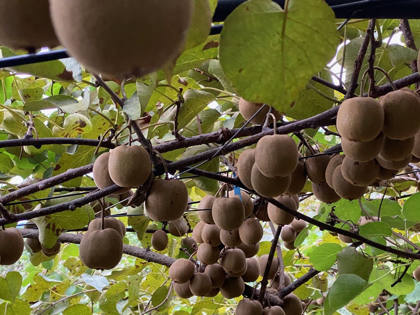 福岡県八女の畑で育てたアップルキウイです。丸みのある形と、すっきりした甘みと爽やかな風味が特徴の品種。農薬や化学肥料を使わず、自然の力を活かして実らせました。