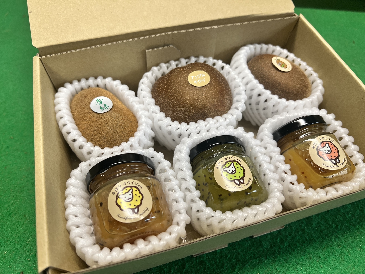 | 内容 | 1箱約キウイ3種3個、ミニジャム3種3個入り(1瓶50g) | ||||||