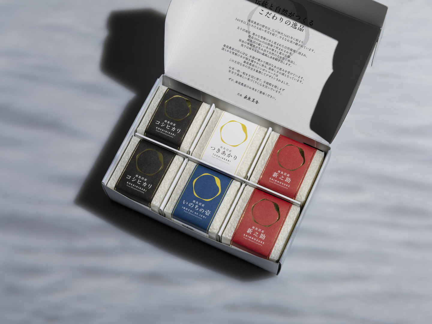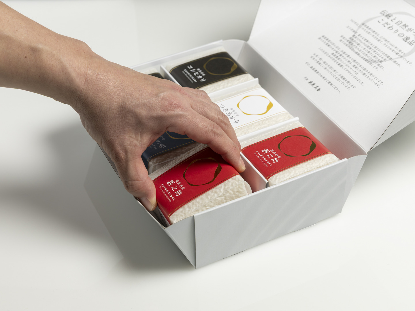 | 内容 | 1.8kg(コシヒカリ300g×2、新之助300g×2、いのちの壱300g×1、つきあかり300g×1 | ||||||