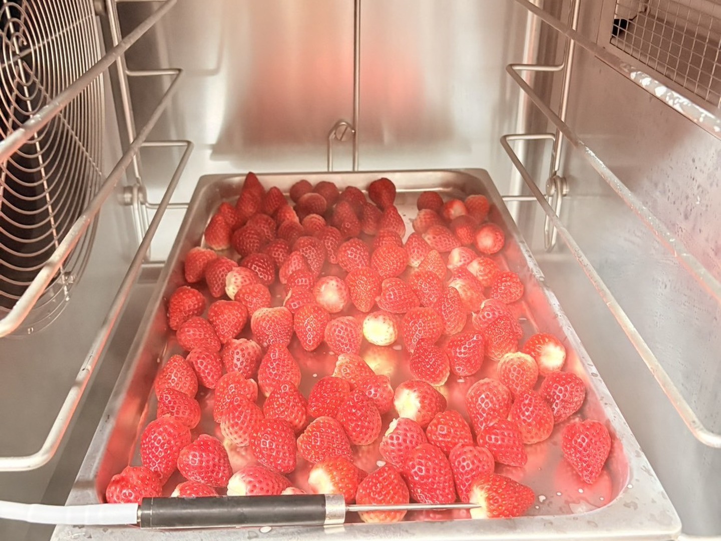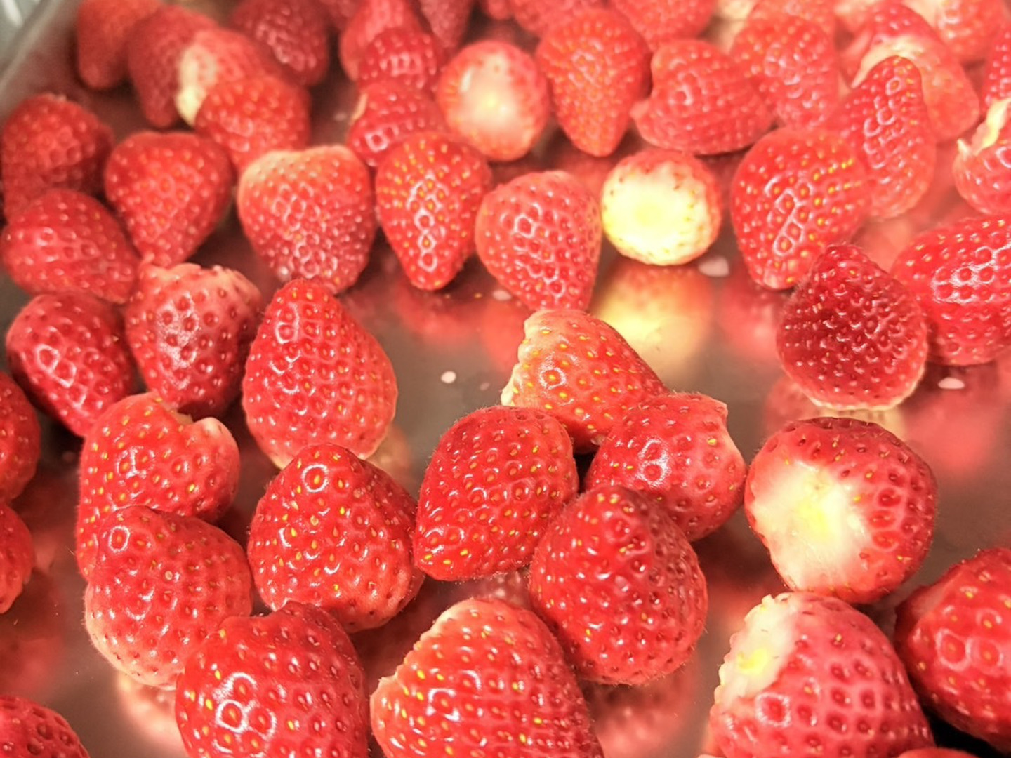 朝採りした新鮮ないちごさんを水洗いしヘタ取り後速やかに−20度まで急速冷凍